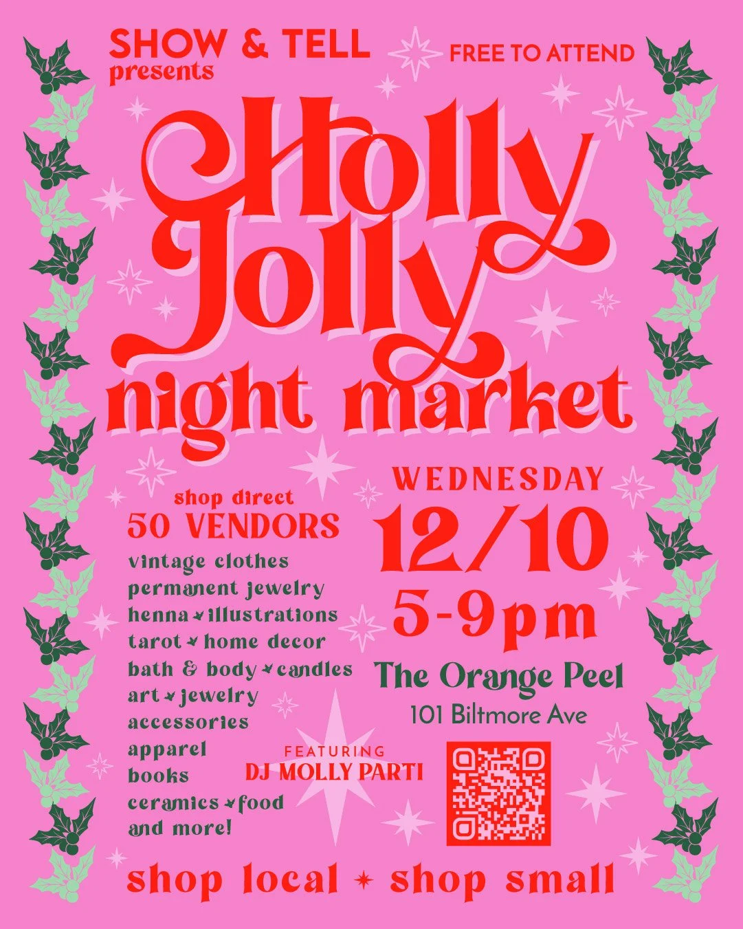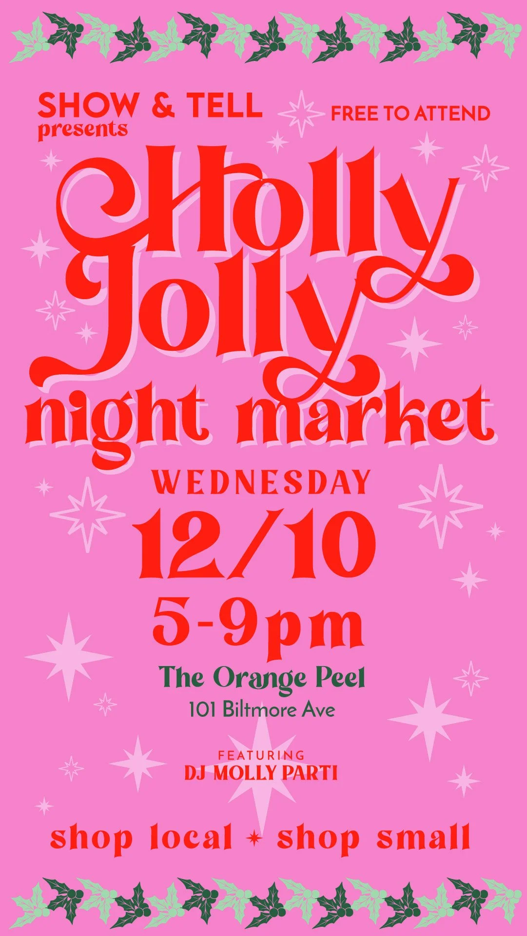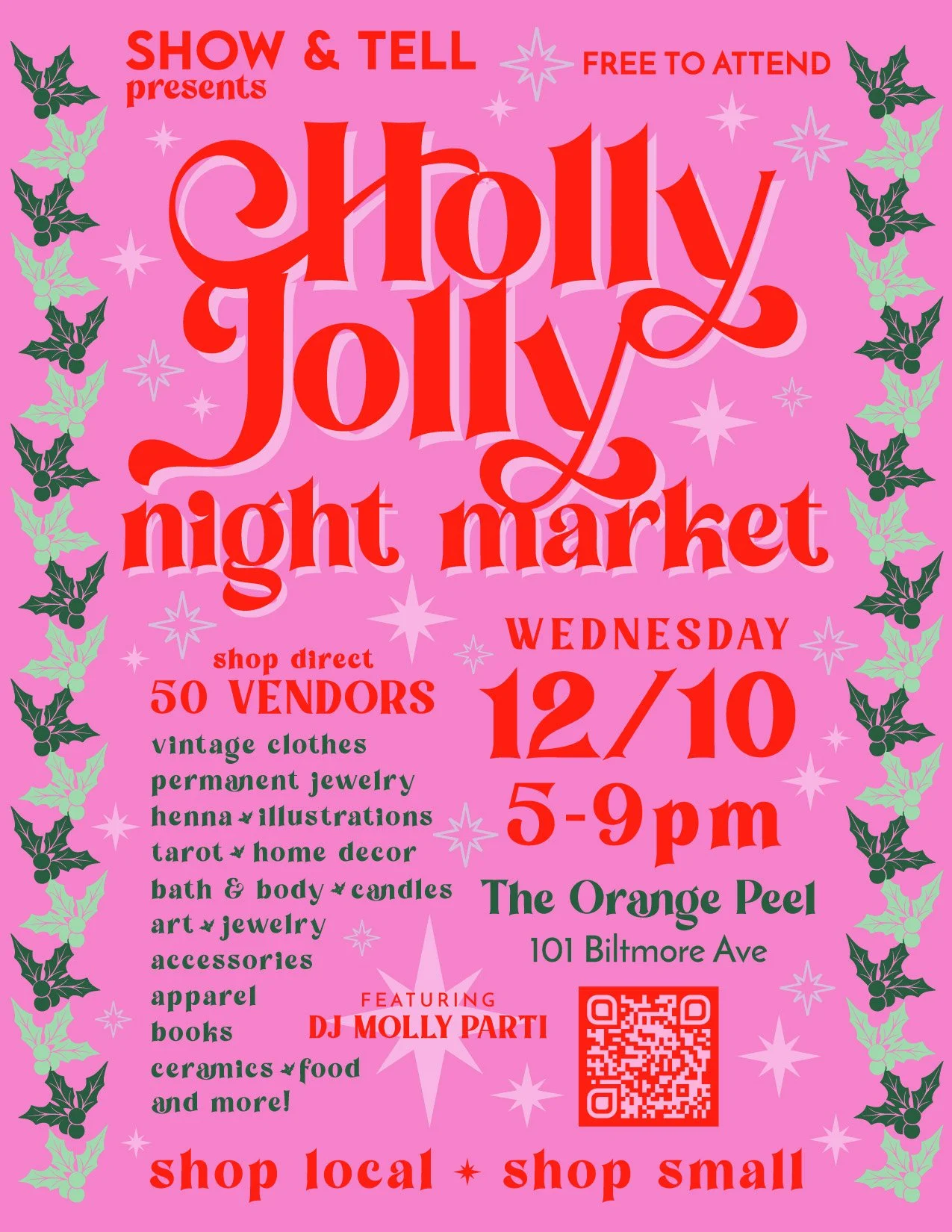 Join makers, artists, and vintage sellers for a night of merriment inside the Orange Peel! We'll transform one of our favorite music venues into a magical night full of festive tunes, bevs, fun activities and an awesome array of creative small, indie businesses for folks to get their holiday shopping done.